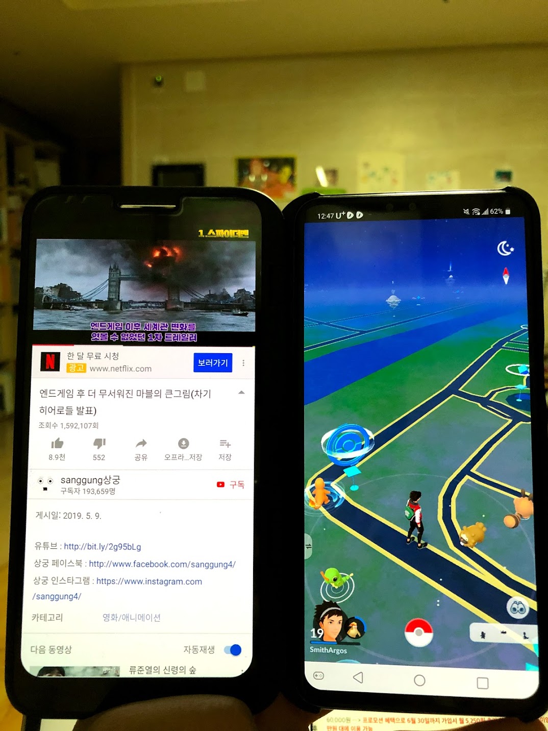 이 타이밍에서 제가 사용 하고 있던 핸드폰(아이폰6s)랑 비교샷을 올려 봤어요.. 역시 엘지 제품이 더 멋지네요